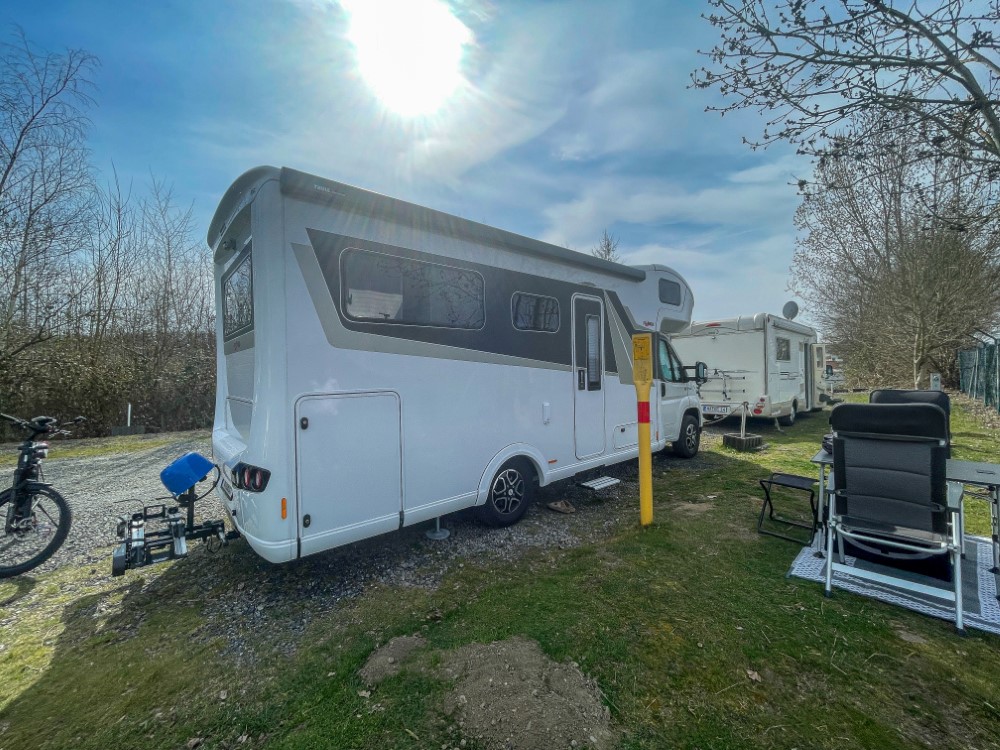 Nach kurzer Überlegung entschieden wir uns für einen Stellplatz an der Ruhr bei Hattingen. Da wir erst nach Einbruch der Dunkelheit ankamen und viele Plätze bereits reserviert waren, stellten wir uns vorerst auf eine freie Parzelle und verbrachten dort die Nacht. Am Freitagmorgen konnten wir dann auf einen besseren Stellplatz mit direktem Blick auf die Ruhr wechseln. Zwar war der Platz selbst nicht der schönste, aber die Umgebung bot tolle Möglichkeiten für Spaziergänge mit den Hunden und Fahrradtouren.