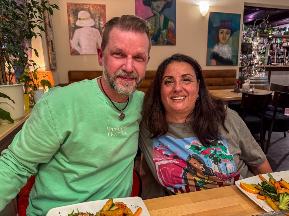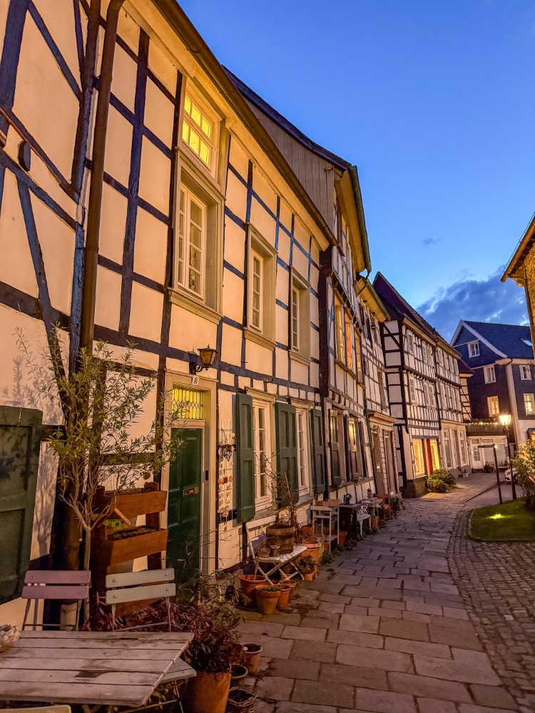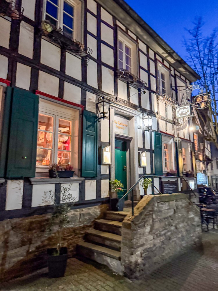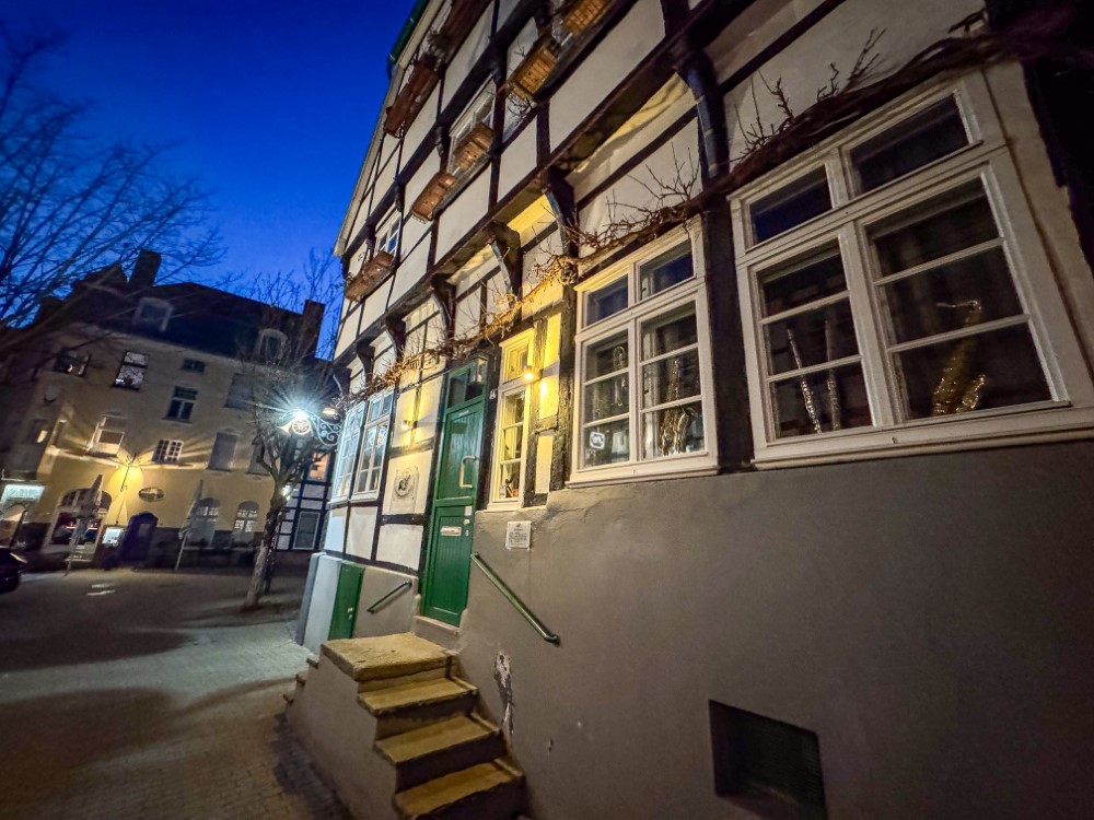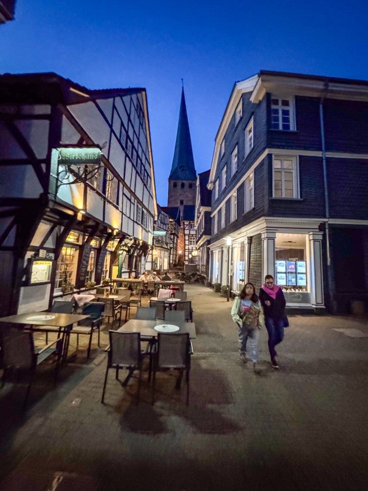 Als sich später der Hunger bemerkbar machte, entschieden wir uns, der Hattinger Altstadt einen Besuch abzustatten. Die historische Altstadt mit ihren wunderschönen Fachwerkhäusern bietet viele gemütliche Restaurants, und nach kurzer Suche fanden wir das griechische Restaurant „Zur Glocke“. Dort erwartete uns eine Auswahl an griechischen Spezialitäten, begleitet von einem griechischen Wein. Nach einem geselligen Abend verabschiedeten wir uns von Carlo und Ophelia und machten uns auf den Rückweg zum Stellplatz. Müde, aber rundum zufrieden mit dem schönen Tag, fielen wir ins Bett.