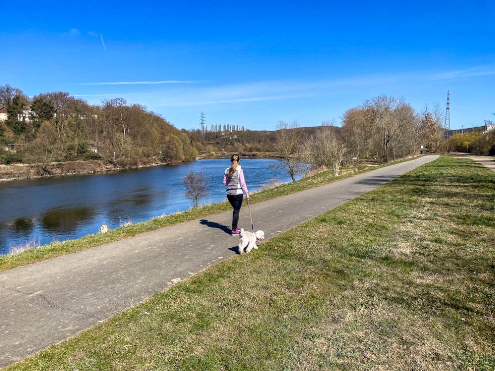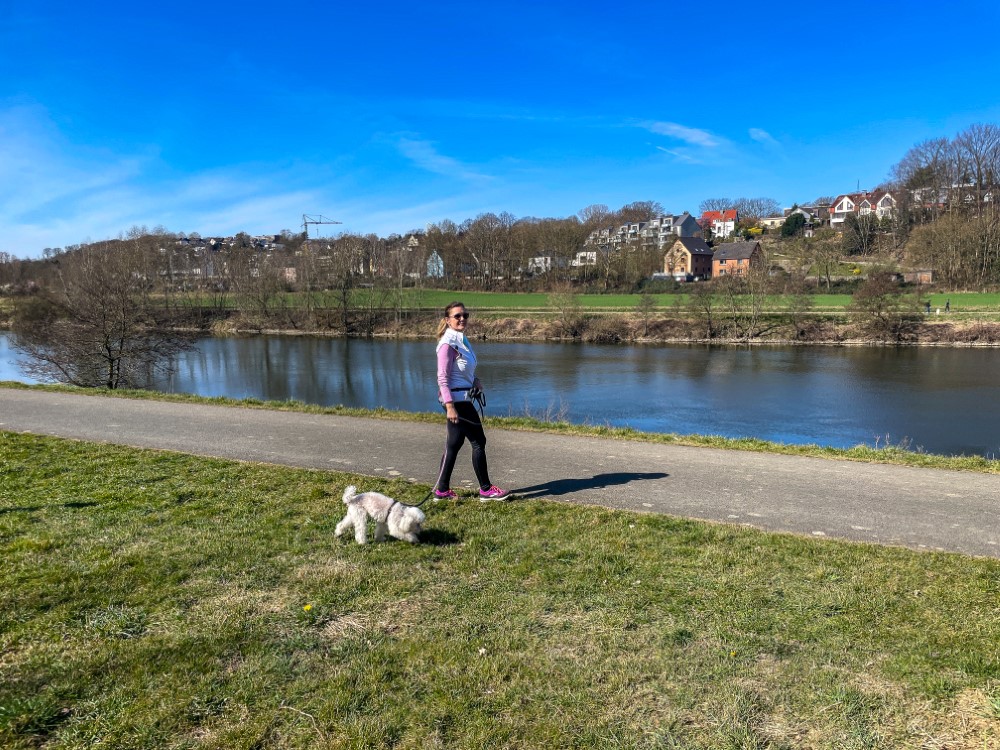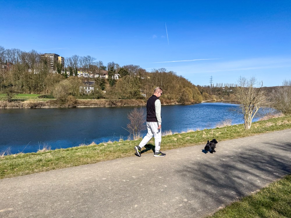 Der Tag begrüßte uns mit strahlendem Sonnenschein und über 20°C – einfach herrlich für Mitte März! Wir nutzten das traumhafte Wetter, tranken unseren Morgenkaffee draußen in der Sonne und genossen die Ruhe. Zudem unternahmen wir mit den Hunden wunderschöne Spaziergänge entlang der Ruhr, wo sie nach Herzenslust schnüffeln konnten, während wir die idyllische Landschaft und die entspannte Atmosphäre genossen.