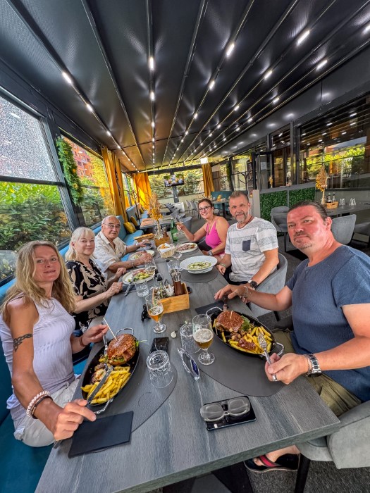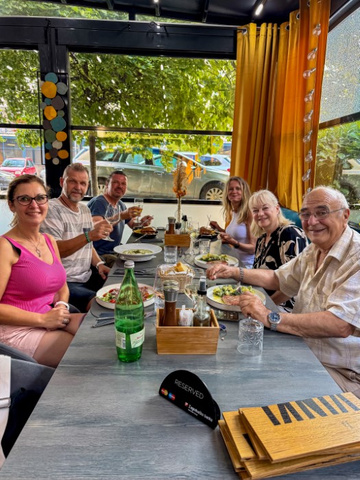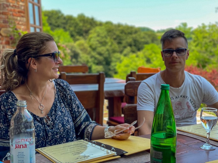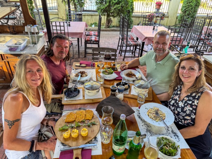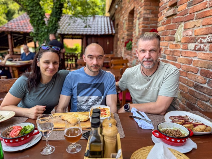 In Zagreb parkten wir unser Wohnmobil in der Einfahrt von Andrejas Vater. Am folgenden Vormittag fuhren wir mit Andrejas Bruder Marco zu seinem Grundstück, das er uns gerne zeigen wollte. Dort haben wir etwas getrunken und uns angesehen, was er bereits an seinem Grundstück verändert hatte. Zum Mittagessen trafen wir uns mit Andrejas Schwester und ihrem Mann Dominik etwas außerhalb von Zagreb. Das Restaurant Klet Kozjak in Sveti Križ Začretje ist bekannt für seine traditionelle kroatische Küche und seine gemütliche Atmosphäre. Es liegt malerisch in der Zagorje-Region und bietet typische Gerichte wie gegrilltes Fleisch, lokale Spezialitäten und hausgemachte Delikatessen. Wir genossen ein entspanntes Essen zusammen.