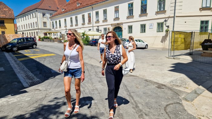 Für den Abend hatten wir einen Tisch im Restaurant Stari Puntijar reserviert. Stari Puntijar ist ein traditionsreiches Restaurant in Zagreb, das für seine authentische kroatische Küche und sein historisches Ambiente bekannt ist. Nach dem äußerst köstlichen Essen kam der Restaurantchef vorbei und stellte Sven und Britti eine Urkunde aus. Damit wurden sie offiziell in den Freundschaftsorden des Restaurants aufgenommen. Danach hatte der Chef noch eine Überraschung für uns: Er führte uns in seinen Weinkeller, wo Britti mit einem großen Schwert eine Sektflasche köpfen durfte. Der Moscato-Sekt war herrlich süß und köstlich. Anschließend zeigte er uns die größte private Kochbuchsammlung in Europa.