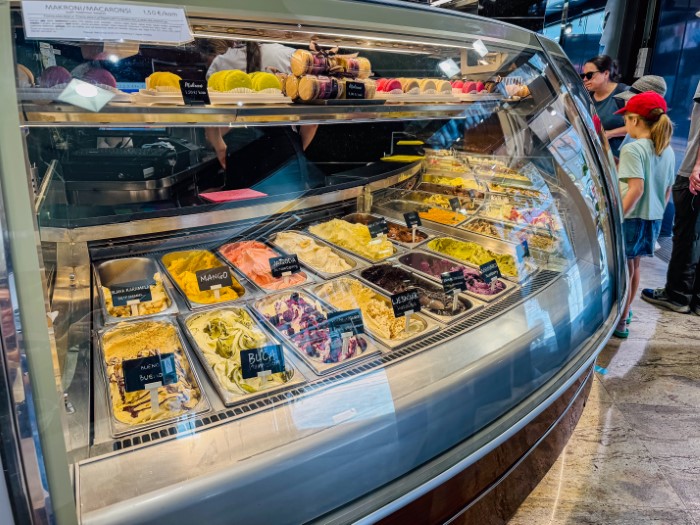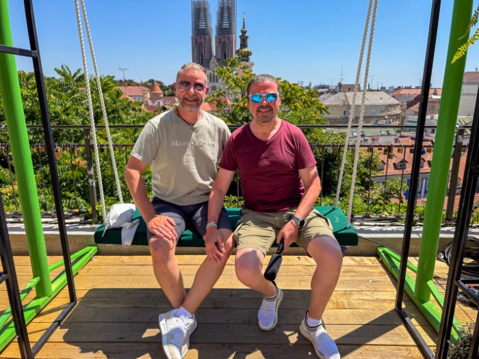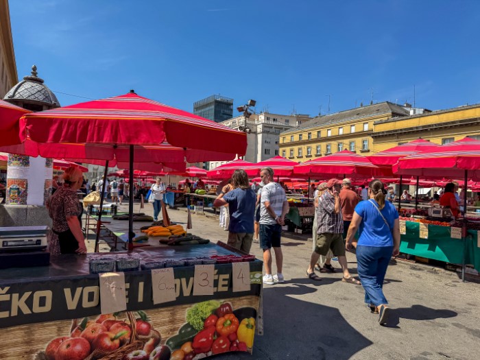 Am Montagvormittag fuhren wir erneut in die Stadt. Da am Sonntag alle Geschäfte geschlossen waren und auch der Dolac-Marktplatz nicht geöffnet war, zeigten wir Sven und Britti nun die Kathedrale von Zagreb, den oberen offenen Marktplatz Dolac und auch den unteren Teil des Marktplatzes. Wir spazierten noch einmal zum Steintor, um ein paar Kerzen anzuzünden. Da kein Urlaub in Zagreb ohne einen Besuch in der bekannten Konditorei Vincek stattfinden kann, ging es natürlich auch dieses Mal wieder dorthin, um leckeres Eis und Kuchen zu genießen. Von dort aus fuhren wir dann in das Viertel der Stadt, in dem ich aufgewachsen bin, und zeigten Sven und Britti die Straßen, die Grundschule und das Haus, in dem ich als Kind mit meinem Bruder und meinen Eltern gelebt habe. Da es in dem Viertel Volovčica viele Plattenbauten gibt, erinnerte Sven dies stark an die ehemalige DDR.