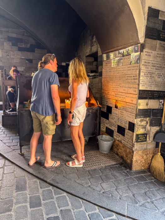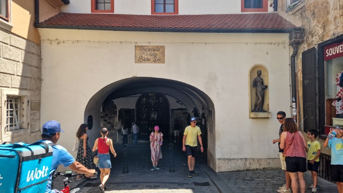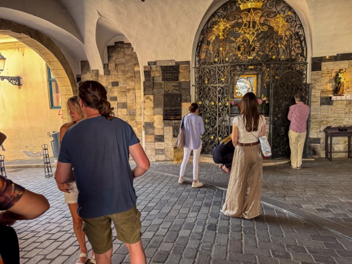Von dort aus gingen wir hinunter zum Steinernen Tor. Das Kamenita Vrata (Steinerne Tor) ist das einzige erhaltene mittelalterliche Stadttor der ehemaligen Stadtbefestigung von Gradec, dem historischen Zentrum der kroatischen Hauptstadt. Heute ist es ein bedeutendes Wahrzeichen und ein spiritueller Ort für Einheimische und Besucher gleichermaßen.