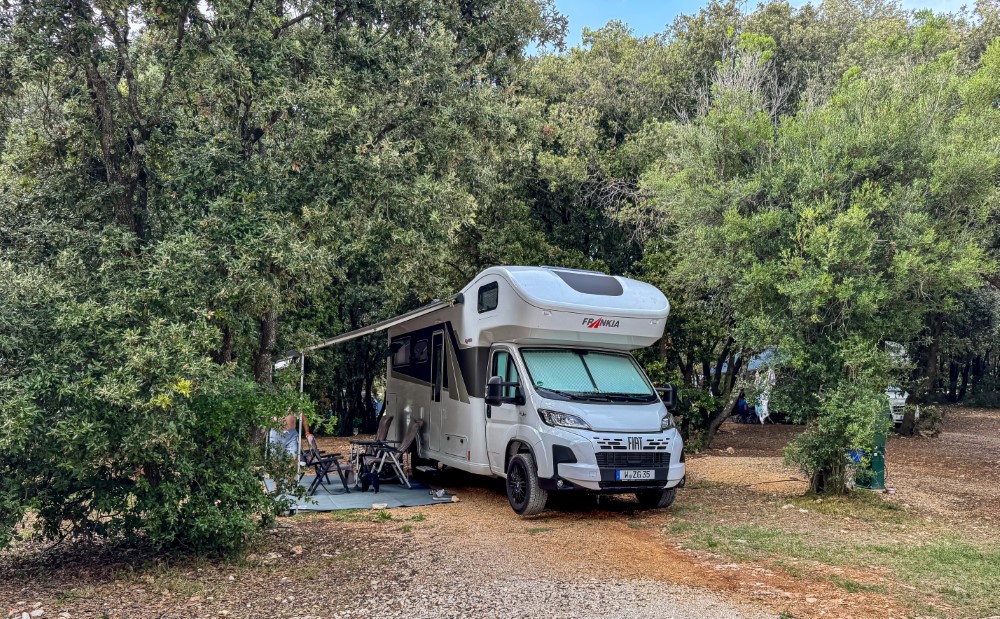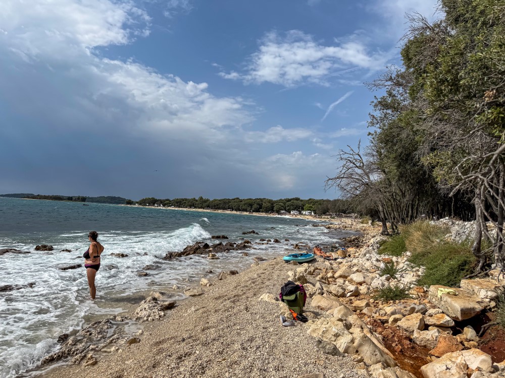 Danach ging es weiter zum Campingplatz Polari, der eine großzügige Free Zone bietet. Unsere Parzelle lag nur wenige Schritte vom Meer entfernt 🌊 und die schattenspendenden Bäume sorgten für ein angenehmes Klima – ideal bei Sonne und Wind.
