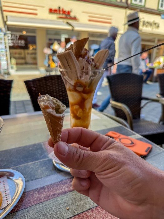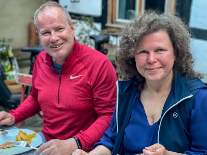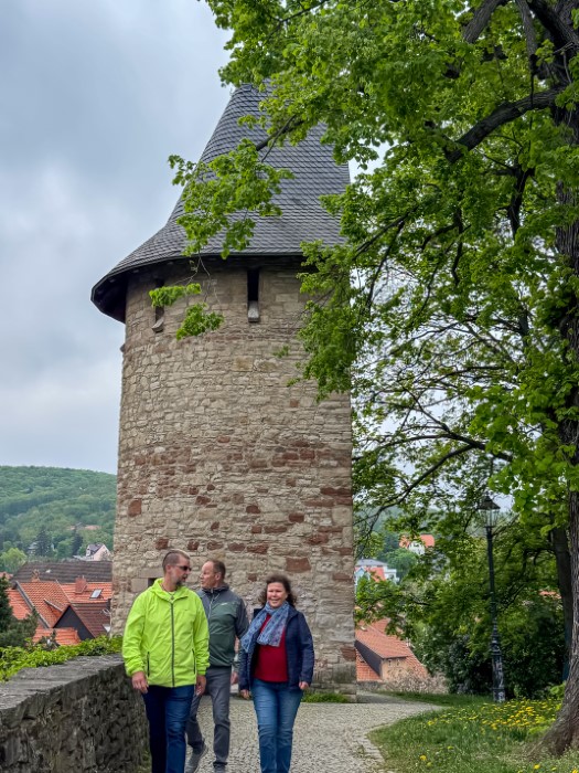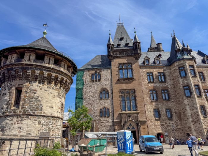 Am Donnerstagvormittag radelten wir bei herrlichem Wetter hinauf zum Schloss Wernigerode. Der Ausblick von dort oben auf den Brocken und die Umgebung war einfach atemberaubend. Kein Wunder, dass dieses Märchenschloss eines der beliebtesten Fotomotive im Harz ist. Später am Tag trafen wir Jeannine, Jens, Sven und Britti in einem gemütlichen Café, wo wir bei Kaffee und Kuchen zusammenkamen. Den Abend ließen wir, nach einem guten Abendessen, entspannt vor unserem Wohnmobil ausklingen – mit guten Gesprächen und Plänen für den nächsten Tag.