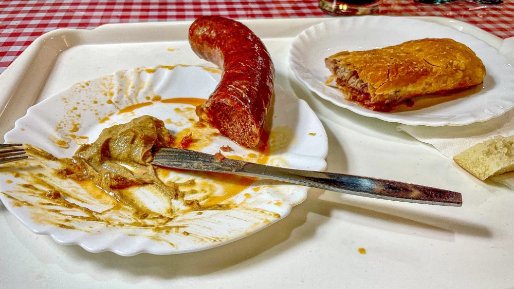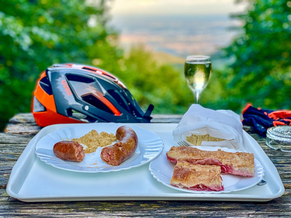 Oben angekommen, gönnte ich mir eine deftige Wurst und zum Nachtisch einen köstlichen Strudel – der perfekte Abschluss einer anstrengenden, aber lohnenden Tour. 🏔️🥨