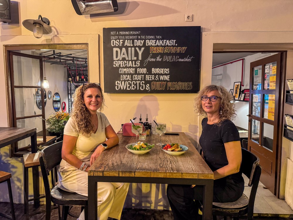 Am Donnerstag zog es mich noch einmal hinauf auf den Sljeme-Berg, diesmal ganz allein. Vor der Berghütte genoss ich ein ruhiges Abendessen mit Blick auf die Stadt, bevor ich zurück nach Zagreb fuhr, wo ich Andreja und ihre Freundin Sanja auf der Tkalčićeva-Straße auf einen Kaffee traf. ☕🌆