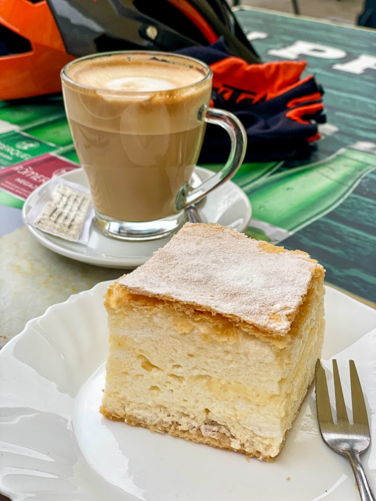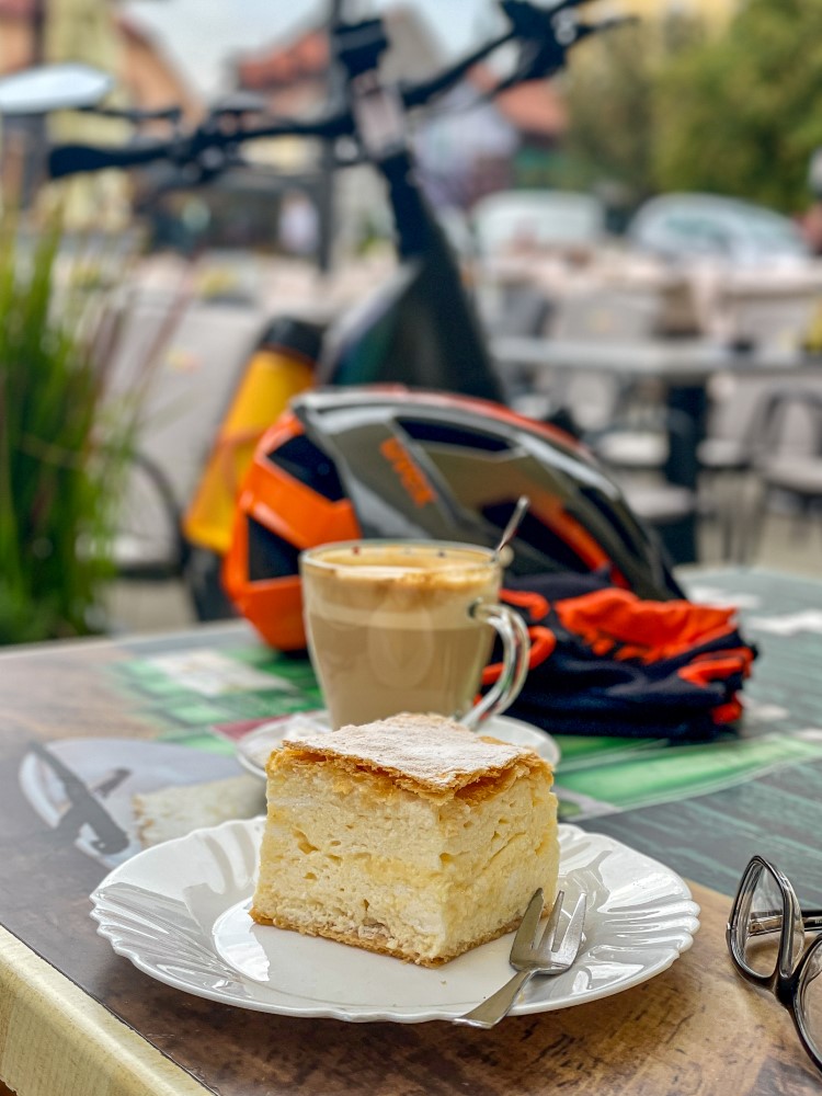 Ein besonderes Ziel war am Dienstag die Stadt Samobor. Mit dem Fahrrad erreichte ich die bekannte Konditorei, in der ich mir die berühmte Samoborska Kremšnita bei einer Tasse Kaffee schmecken ließ. Natürlich nahm ich für alle anderen auch ein paar Stücke im Rucksack mit nach Hause. 😋