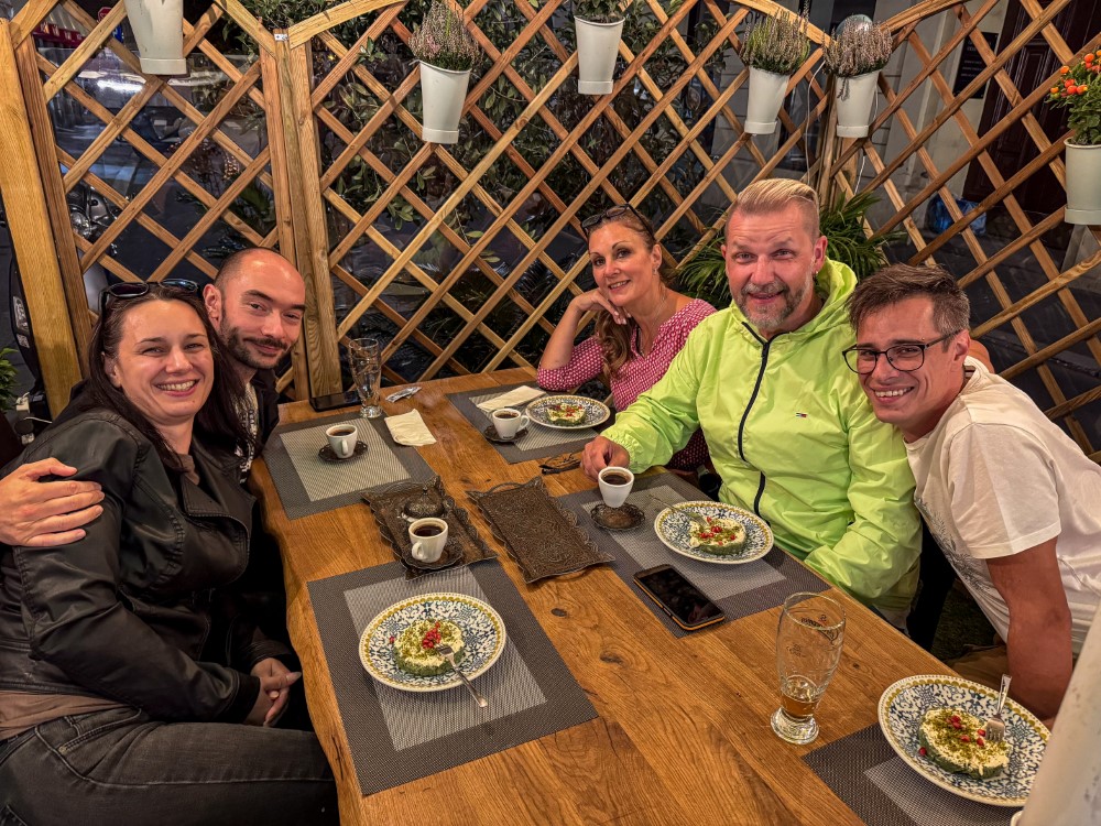 Am Mittwoch wurden wir von Zeljka und Dominik in ein libanesisches Restaurant eingeladen. Wir probierten uns durch verschiedene Gerichte – ein kulinarisches Highlight und ein wunderschöner Abend in geselliger Runde. 🌿🥙